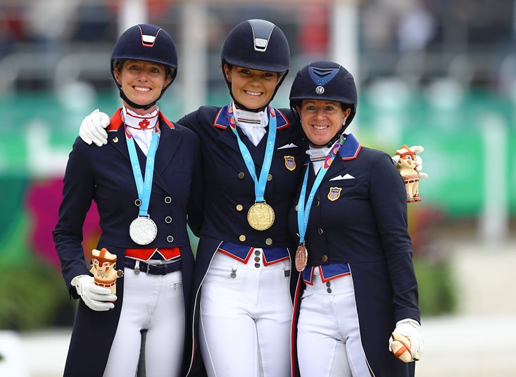 (L to R) – silver medallist Tina Irwin (CAN), gold medallist Sarah Lockman (USA) and bronze medallist Jennifer Baumert (USA). (FEI/Daniel Apuy, Getty images)