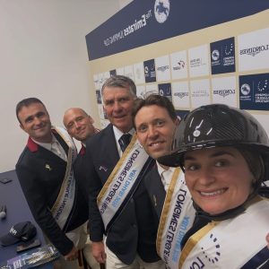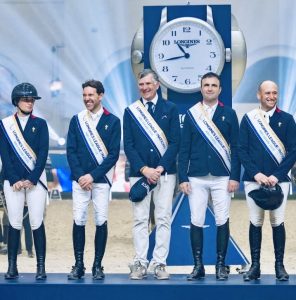 El escenario estaba listo para “les Bleus”, quienes se mostraron precisos y concentrados desde el principio. Los ceros siguieron para el debutante de la serie, Nicolas Sers, montando a Eleven de Riverland, y el atleta estrella, Simon Delestre, a bordo del acertadamente llamado Golden Boy DK. La estrella emergente Jeanne Sadran y el impresionante semental Dexter de Kerglenn fueron el único binomio francés en sumar faltas al derribar el número cuatro.