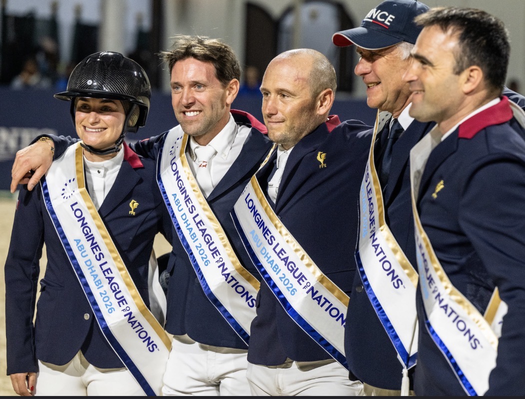 El equipo francés marcó la pauta para la tercera temporada de la Longines League of Nations™ con una sensacional victoria en Abu Dabi (EAU), donde el equipo de cuatro jinetes logró una contundente victoria. Los franceses mantuvieron la calma para alzarse con el título inaugural de la temporada y plantearon un desafío temprano, terminando con tan solo ocho faltas en dos vueltas. Alemania quedó segundo con 12 faltas, seguida por Brasil, también con 12, pero con más tiempo que los alemanes
